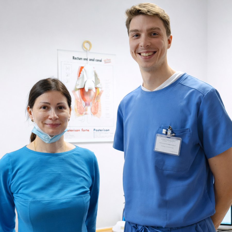 Nuotraukoje – gydytojas gastroenterologas Antanas Dambrauskas su bendrosios praktikos slaugytoja Jurgita Kartašova